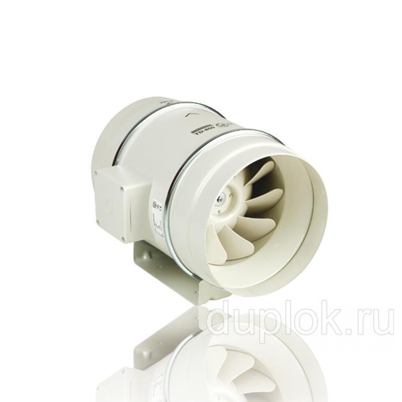 Вентиляторы серии TD разработаны специально для работы с каналами большой протяженности и в условиях повышенных требований к уровню шума в помещении. Имеют достоинства центробежных вентиляторов (большое давление на выходе) и преимущества осевых вентиляторов (большой расход воздуха, малые уровень шума и габаритные размеры). Вентиляторы серии TD предназначены для монтажа в вентиляционных каналах. Вместе с вентилятором поставляются крепежные элементы. Возможен как вертикальный, так и горизонтальный монтаж. Вентиляторы серии TD с обозначением "Т" имеют встроенный таймер задержки отключения от 1 до 30 минут и одну максимальную скорость.В нашем интернет-магазине duplok.ru вы можете купить вентилятор TD по доступной цене.